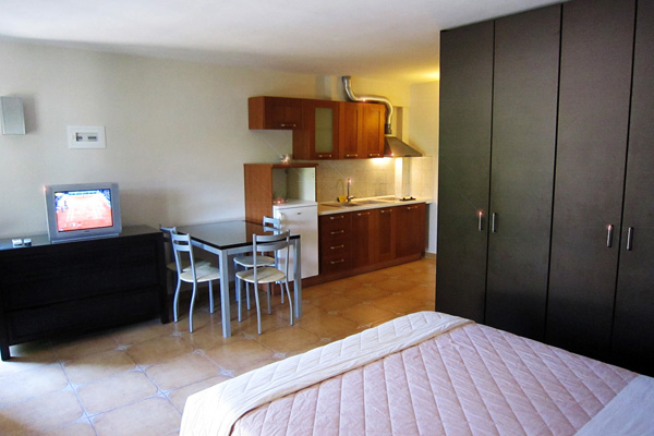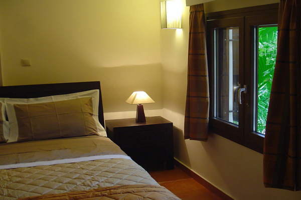 Our maisonette is decorated in a modern way to compliment the accommodation's location in the Greek countryside. Split level apartment with a double bed on the mezzanine floor.